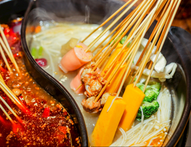 串串香以其獨特的魅力和鮮明的特色遍布于眾多城市,它實際上是火鍋的另一種形式,所以人們往往又稱它為“小火鍋”。吃串串從80年代的“口食”,90年代的“目食”發展到今天“心食”的境界,從色、香、味、型、器的基礎上,上升到聲(聽聲音)、法(做法)、量(份量)、質(質量)、數(點菜量)的層面,而且更注重營養的搭配與吸收及原料的鮮活程度?,F在要開個串串的餐飲店,既要有特色的風格,又要有獨特的口味,吸引好奇的顧客來打響自己的品牌。