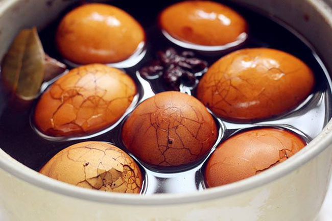 茶葉蛋,著名中國小吃,中國的傳統食物之一,大部分地區都有該小吃。是煮制過程中加入茶葉的一種加味水煮蛋,因其做法簡單,攜帶方便,多在車站、街頭巷尾,游客行人較多之處等場所置小鍋現煮現賣,物美價廉。可以做餐點,閑暇時又可當零食,實用和情趣都兼而有之。因為茶葉有提神醒腦的功能,故在燙煮過程中加入少許茶葉,煮出來的蛋便色澤褐黃。