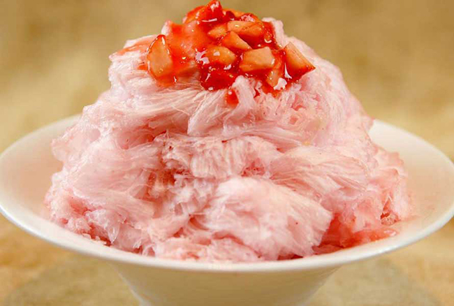 零攝氏度以下的低溫,是神奇魔術師,五顏六色的水果和牛奶在他的手下,一個個華麗麗變身。層層疊疊,絲絲縷縷,如細膩絲滑的彩色雪山。驕陽和驟雨交替上演的五月天,提前讓人感受盛夏的熱辣脾氣。