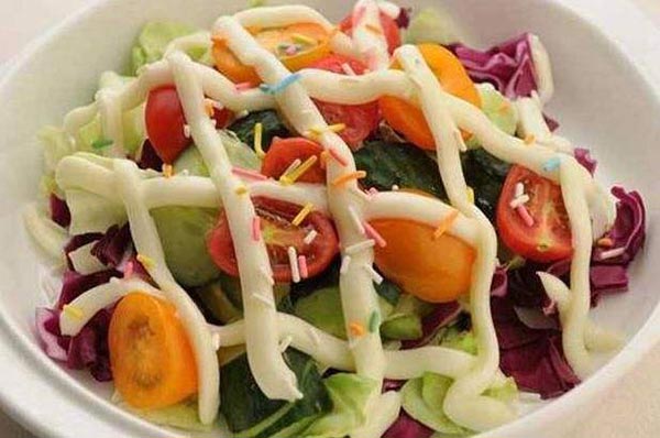 色拉系音譯,即Salad,又譯作沙拉、沙律。主要有三類,分別為水果沙拉、蔬菜沙拉、其他沙拉。 蔬菜沙拉源自于西方,由綠色有葉生菜制成的一道菜,常加有蘿卜、黃瓜或西紅柿,并加調味品食用。