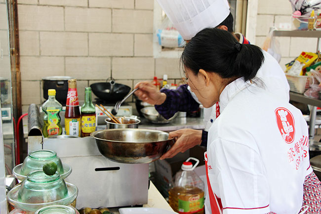 師傅正在教小面學員特色小面制作方法