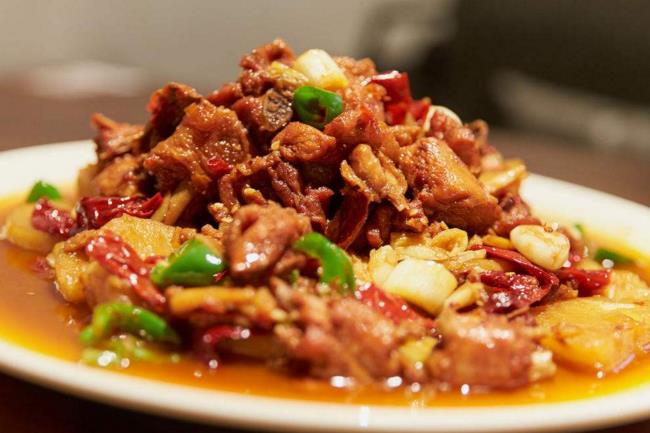 色彩鮮艷、爽滑麻辣的雞肉和軟糯甜潤的土豆,辣中有香、粗中帶細,是餐桌上的佳品