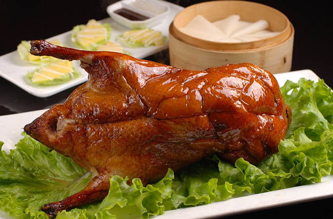 宜良烤鴨,是云南省經典的地方傳統名肴。起源于明朝,已有600多年的歷史,說起來這宜良烤鴨并不算云南本土風味菜,它是由南方傳過來的。它肥瘦相宜,皮酥脆,內香嫩,光亮油潤,色澤紅艷,清香離骨,地方風味顯著。